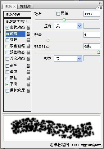 10、重复步骤 8,并添加散布设置如下。