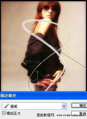 9、创建新图层,选择钢笔工具,打开路径面板,右键点击步骤 7所建路经选择“描边路径”。