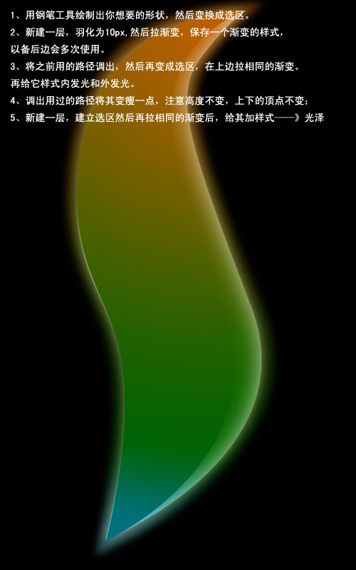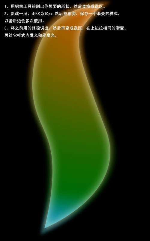 3、将之前用的路径调出,然后再变换成选区,在上边拉相同的渐变,再调出图层样式,适当加点内发光和外发光,数值自己把握。