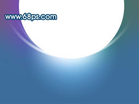 10、新建一个图层,用椭圆选框工具在图层上半部分绘制一个较大正圆,填充白色,如图17,然后加上图层蒙版,选择渐变工具颜色设置为黑白渐变,有正圆的左下向右上拉渐变,效果如图18。