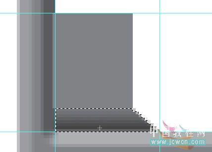23、在刚才填充的小方块下面和右面分别做出选区,并进行渐变填充。再用加深工具对这个键的面上稍微涂抹一下(有点意思就行),现在我们的第一个按键即Ctrl键就算是做成了。