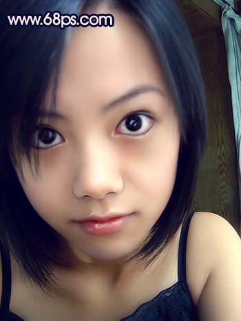 本教程的素材图有点模糊,眼睛部分反光太大。处理的时候先修复下光感,然后再磨皮及调色。人物脸部细节部分较多,需要突出各部分的质感。