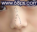 5、用套索工具选区图7所示的选区,按Ctrl + ALt + D羽化5个像素,按Ctrl + J复制到新的图层,把图层混合模式改为“叠加”,增强鼻子的质感。