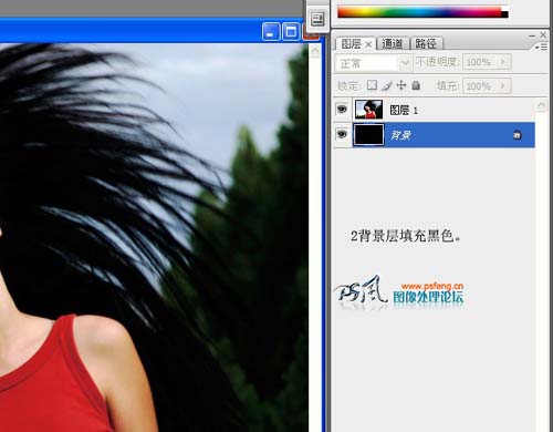 2、把背景图层填充黑色。