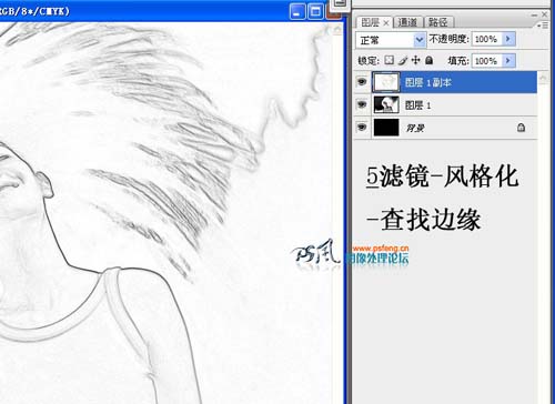 5、执行:滤镜 > 风格化 > 查找边缘。