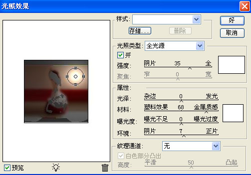 8、执行滤镜菜单---渲染-----光照效果,设置如下: