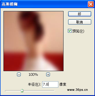 6、点击复制的那个新美女图层,点击滤镜-----模糊-----高斯模糊,设置7.8像素的模糊。