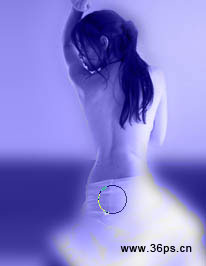 #p# 7、点击橡皮擦工具,在属性那选择一个柔边的画笔,对复制出来的这个美女进行擦拭,沿着美女的轮廓进行擦拭!主要是把模糊过的美女给檫出来,尽情用你的鼠标是touch美女的身体。