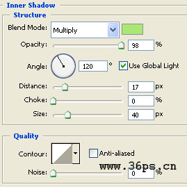7、下面我们给这个图层添加效果,内阴影混合模式还是默认的正片叠底。