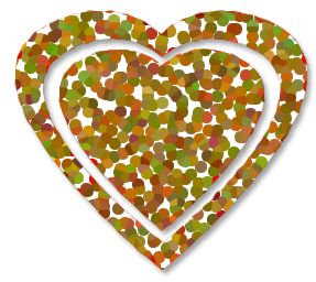 7、复制“heart1”图层,命名为“heart3”,把它拖到最顶层。执行pixelate(像素画)->pointillize(点状化)滤镜,将cell size设为12,这时有了一大堆花花绿绿的东西粘在巧克力上,不用怕,它们正是果仁的原型。