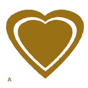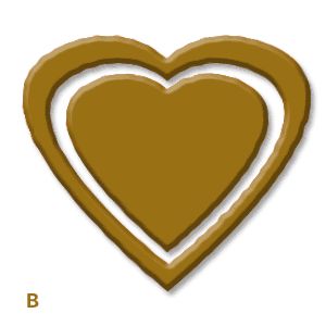 #p# 3、复制“heart”图层命名为“heart1”,之后暂时关闭“heart”层的显示,将“heart1”上的心形用RGB(154,112,21)填充为巧克力的颜色,这时我发现心形的轮廓太过平整,而正常情况下巧克力的边缘并不是很光滑,所以还要稍微做些加工,选择distort(扭曲)滤镜下的ripple(波纹),将amount(数量)设为33%,这样心形的边缘就有了折皱感。(图A)