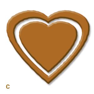 下面要做的事大家应该都能猜到,对,把果仁也变成立体的。在运用Layer style之前先用魔术棒工具选中“heart3”上非果仁色区域(白色)将它们删掉,接着打开“heart3”的Layer style对话框,和前面一样选择bevel and emboss效果,不一样的是这次将style改为emboss,shadow model变为overlay。