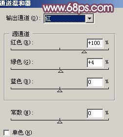 6、创建通道混合器调整图层,参数设置如图10,效果如图11。