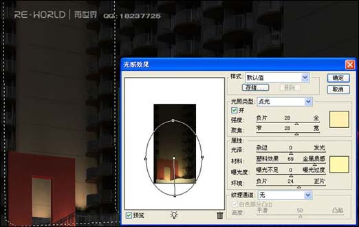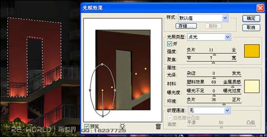 16、好,侧面楼梯的装饰墙我是用滤镜里的光照效果出来的,参数可以依自己喜欢的来调,也可以放置多个灯具。