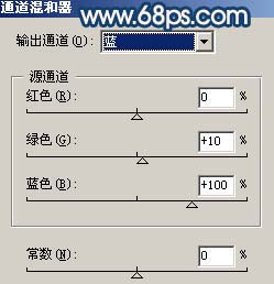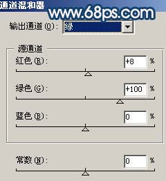 7、创建通道混合器调整图层,对绿色及蓝色通道进行调整,参数设置如图16,17,效果如图18。
