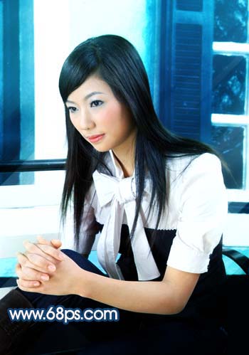 本教程的素材图为室内拍摄的照片,光效比较柔和,人物肤色的质感不是很好,背景也比较昏暗。调色的时候可以根据需要适当把人物及背景处理一下。颜色可以调成自己喜好的颜色。