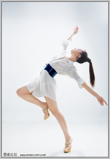 2、调整好人物重心后,我分别校正肤色,特别注意肤色的均匀和明暗的对比;接下来用液化工具来塑一下形体,然后用变换工具把人物的腿拉长了一点,这些基础的东东就此带过,呵呵: