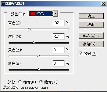 3、创建可选颜色调整图层,参数设置如下图: