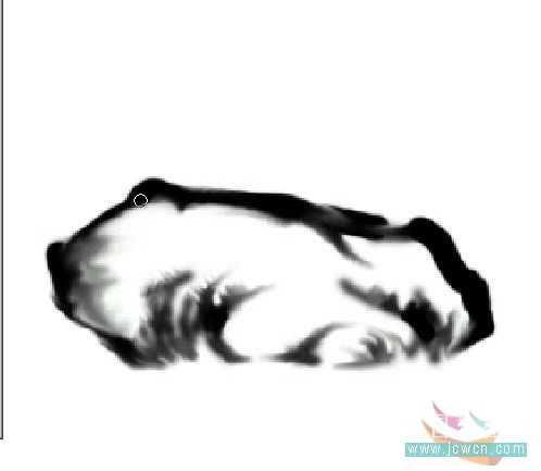 二、用涂抹工具沿线条涂抹勾画,对照国画作品,表现出毛笔绘画的效果,用模糊工具可表现出晕染的效果。