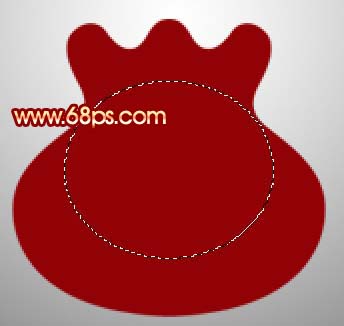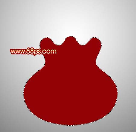 2、新建一个图层,命名为“表面”,用钢笔工具勾出图2所示的路径,转为选区后填充深红色:#9B0908,效果如图2。