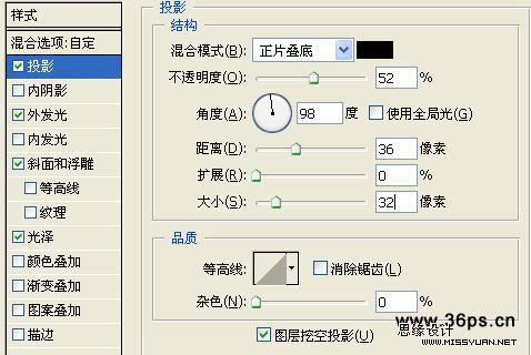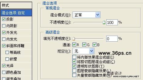 3、为大大的a添加图层效果。打开图层样式,选择混合选项,设置如下: