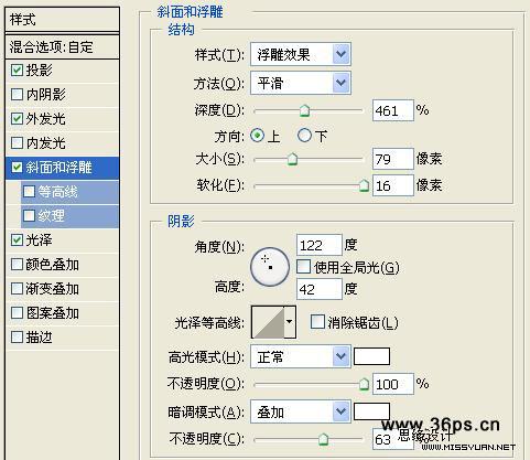 斜面与浮雕,设置如下: