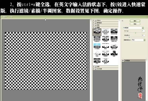 2、按Ctrl + A键全选,在英文输入法状态下,按Q进入快速蒙版,执行:滤镜 > 素描 > 半调图案,参数设置如下图。