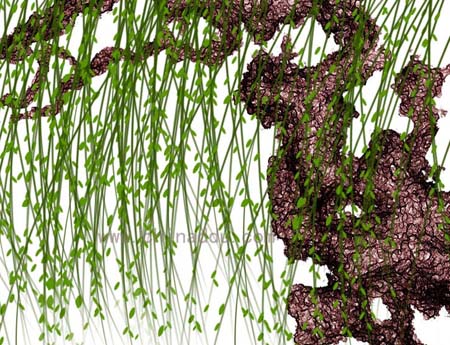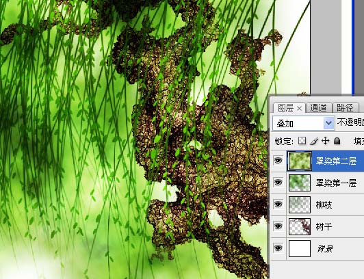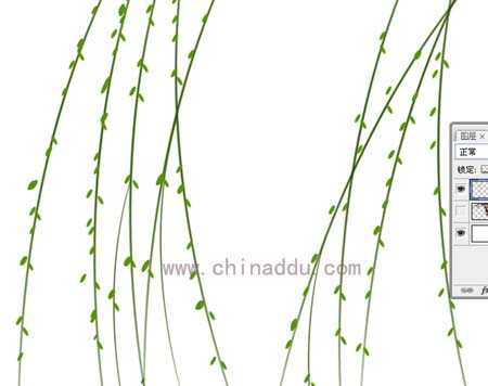 13、用“椭圆20像素”画笔画柳叶。另一个方向的另想办法吧,呵呵,不会太难吧。