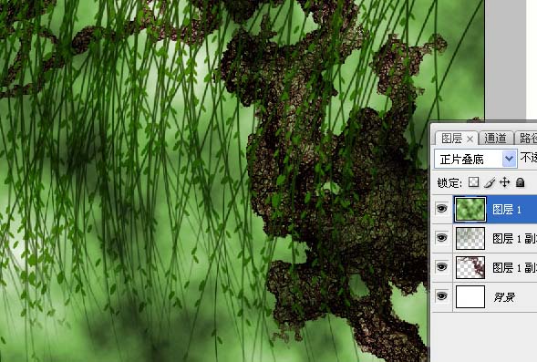 #p# 6、复制图层1,并把图层模式改为“正片叠底”。