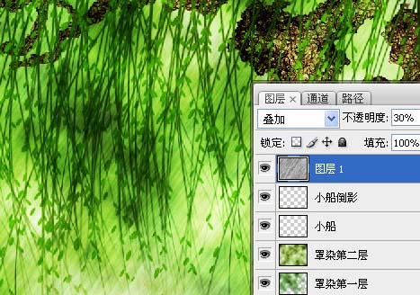 #p# 24、将刚才的图层模式改为“叠加”,不透明度改为30。