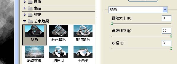 3、执行:滤镜 > 艺术效果 > 壁画。