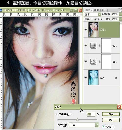 3、新建一个图层,按Ctrl + Alt + Shift + E盖印图层,执行:图像 > 调整 > 自动颜色,确定后按Ctrl + Shift + F渐隐自动颜色,数值为:50%。