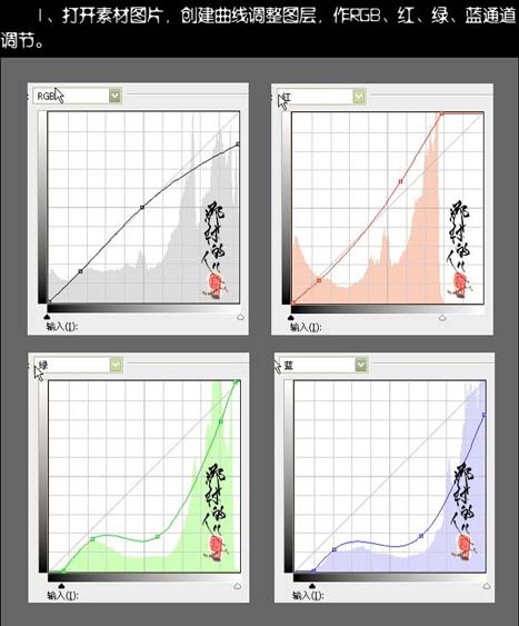 #p# 1、打开原图素材,创建曲线调整图层,对4个通道进行调节,参数及效果如下图。