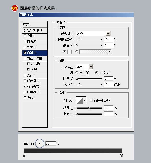#p# (11部分)、荧光屏高光图层画法及所需的样式设置。