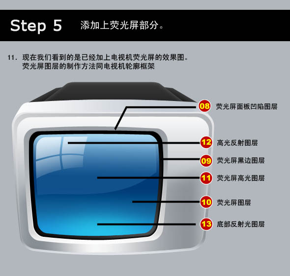 12、荧光屏图层拆解成下面6个部分08--13,下面详解介绍细节部分制作。