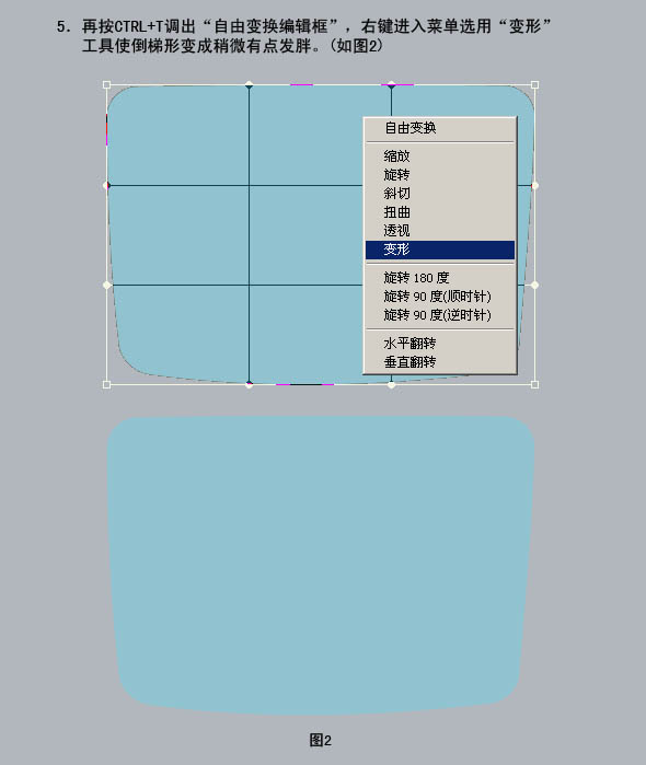 #p# 5、再按Ctrl + T调出“自由变换编辑器”,右键进入菜单选用“变形”工具使倒梯形成稍微有点发胖。