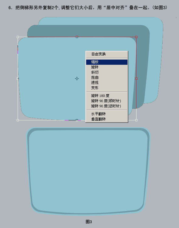 6、把倒梯形另外复制2个,调整它们大小后,用“居中对齐”叠在一起。