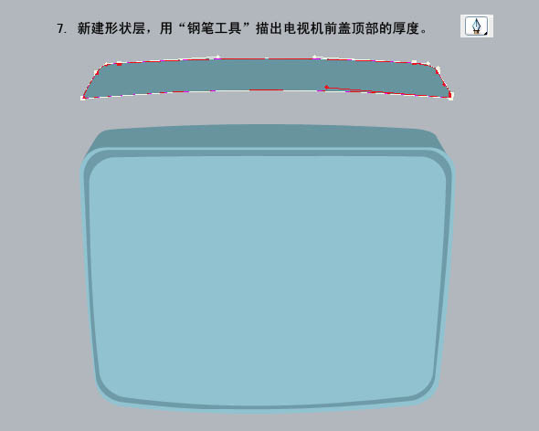 7、新建形状层,用“钢笔工具”描出电视机前盖顶部的厚度。