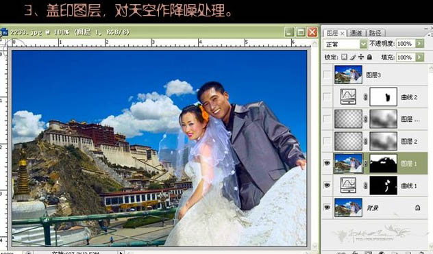 3、新建一个图层,按Ctrl + Alt + Shift + E盖印图层,对天空降噪处理。
