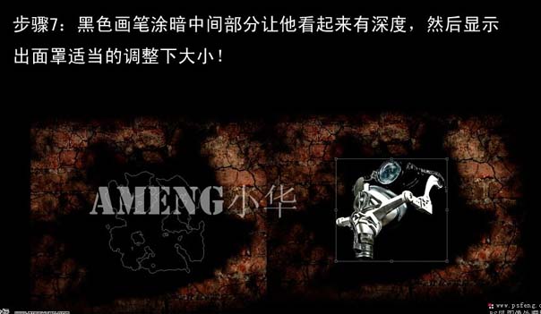 7、用黑色画笔涂暗中间部分,让他看起来有深度,然后显示出面罩适当调整下大小。
