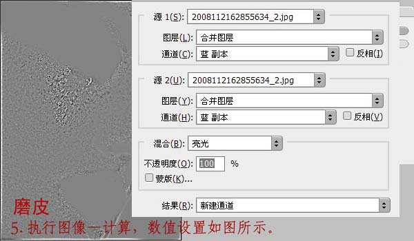 5、执行图像——计算,混合模式选择亮光,不透明度为100%。