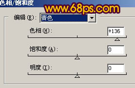 9、按Ctrl + U调整色相/饱和度,参数设置如图17,18,主要改变人物衣服的颜色,效果如图19。