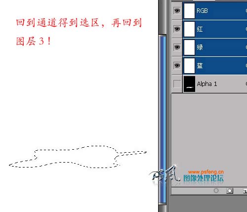 8、回到通道面板,调出新建通道选区,回到图层3。