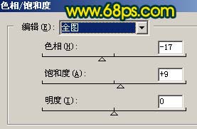 4、创建色相/饱和度调整图层,参数设置如图9,效果如图10。