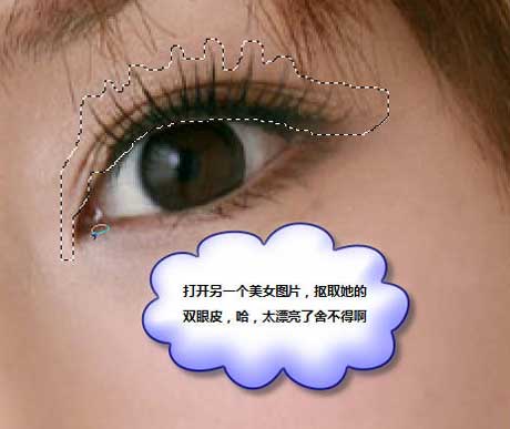 2、打开下图所示的人物素材,用套索工具扣取她的双眼皮。
