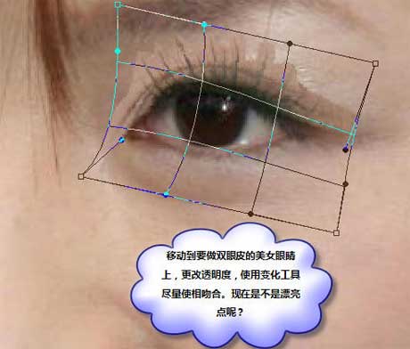#p# 3、把刚才选区的部分复制进来,稍微调整好透明度,按Ctrl + T变形,右键选择变形,尽量调吻合,调好后把图层不透明还原为:100%。