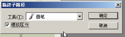 #p# 5、利用路径选择工具按住shift键选中所有的树枝路径,用大小为5前景色为(R:65、G:67、B:53)的画笔执行描边子路径,且将“模拟压力”勾选;
