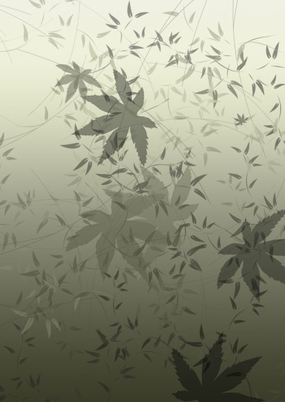 9、设置前景色(R:65、G:67、B:53),背景色为白色,利用上面设置好的画笔进行绘制,将图层1的不透明度改为50%,得到如图所示效果;