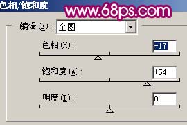 4、创建色相/饱和度调整图层,参数设置如图5,确定后再创建亮度/对比度调整图层,参数设置如图6,效果如图7。