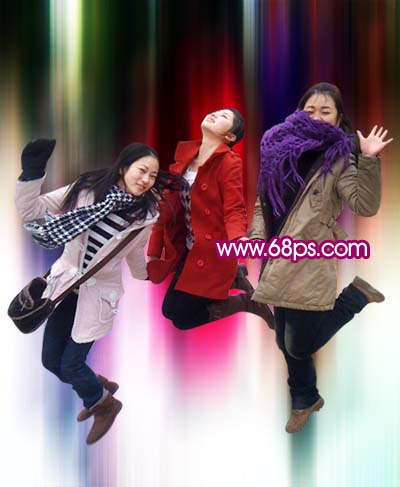原图快门把握的不错,刚好抓拍了起跳的瞬间。不过光线不是很好。处理的时候适当的吧背景换掉,再把人物部分调亮一点即可。
